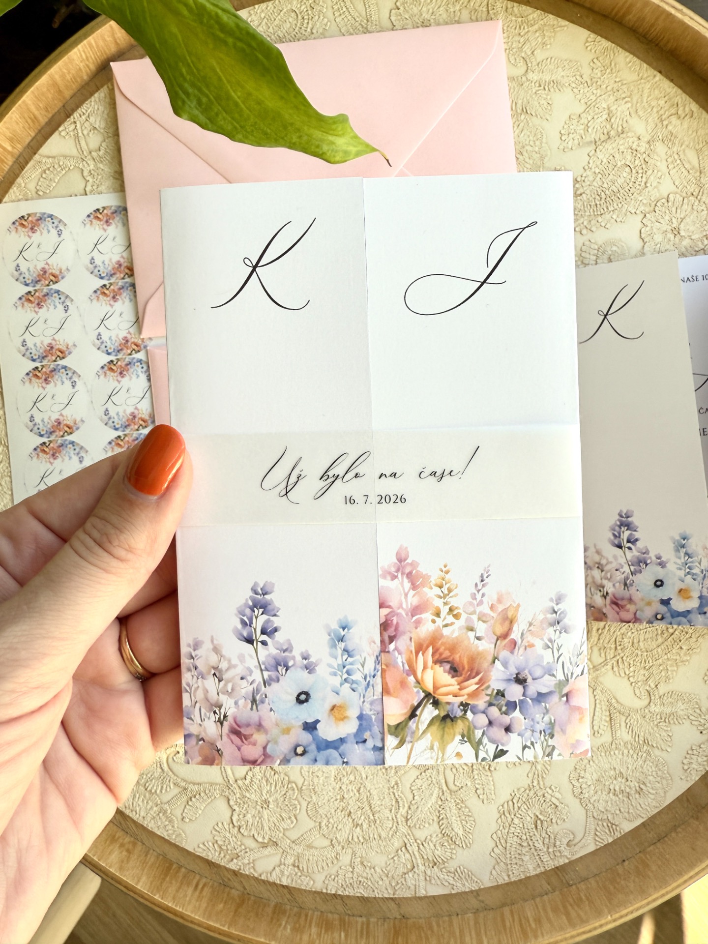 Ideální pro nadepsání jmen, iniciálů snoubenců nebo pro květiny/grafiku z oznámení. Ve třetím kroku objednávky vložíte poznámku s textem.