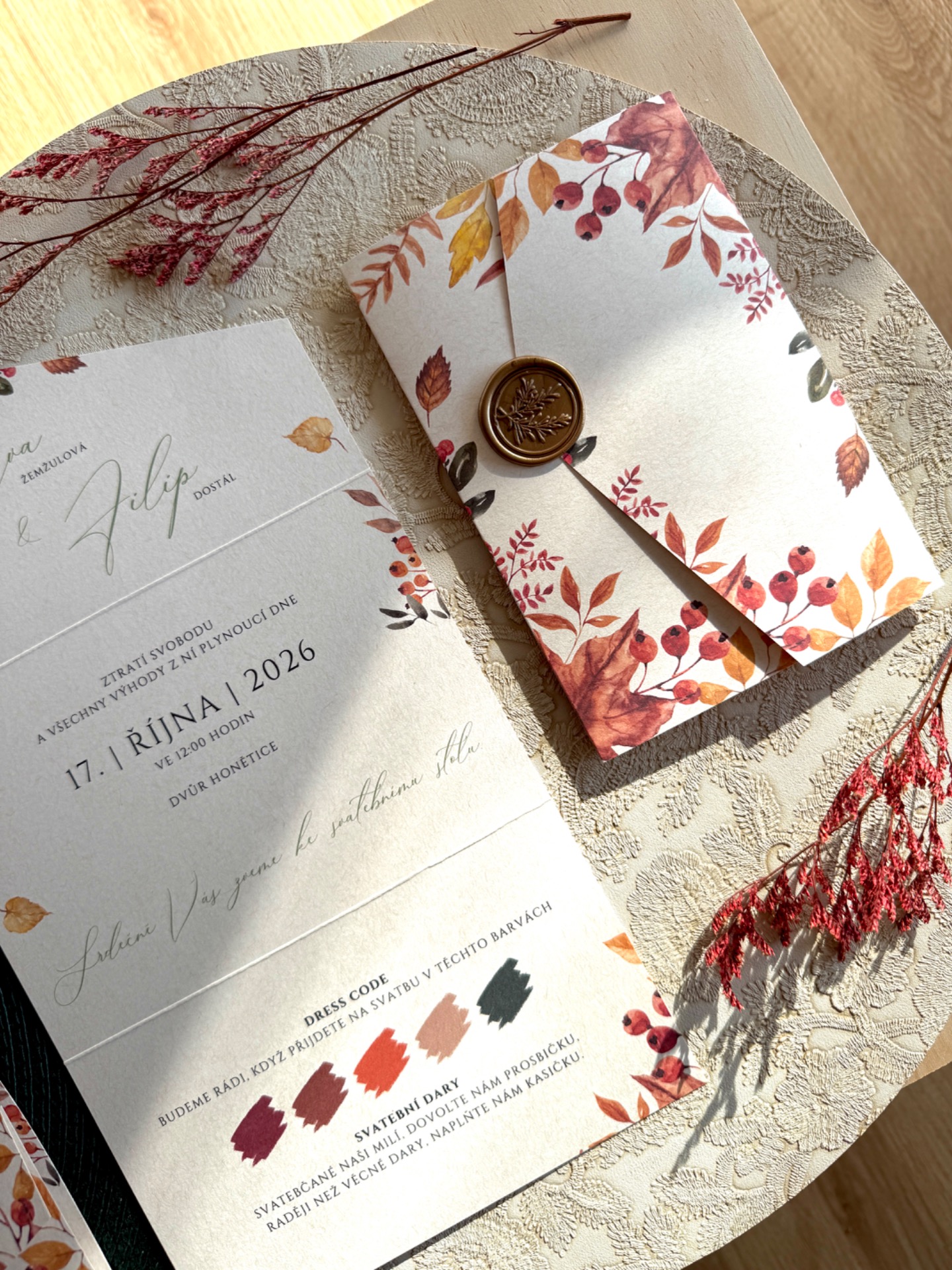 Poznámky a doplňující informace (jako datum, jména, místo, atd...), můžete vložit ve třetím kroku objednávky, nebo mi přímo napište do emailu stvorenicko-svatby@email.cz. Před výrobou vždy zašlu náhled na odsouhlasení.