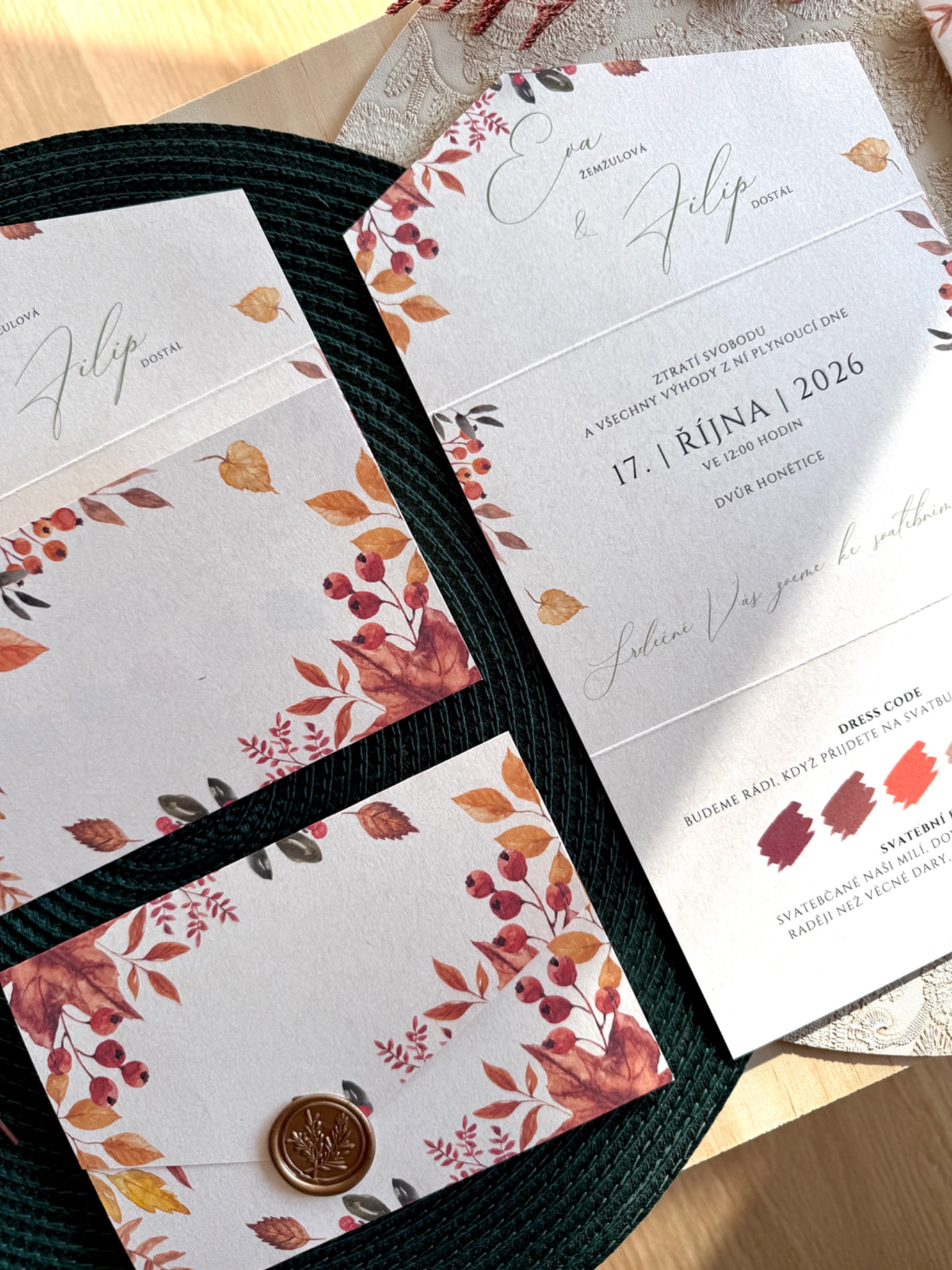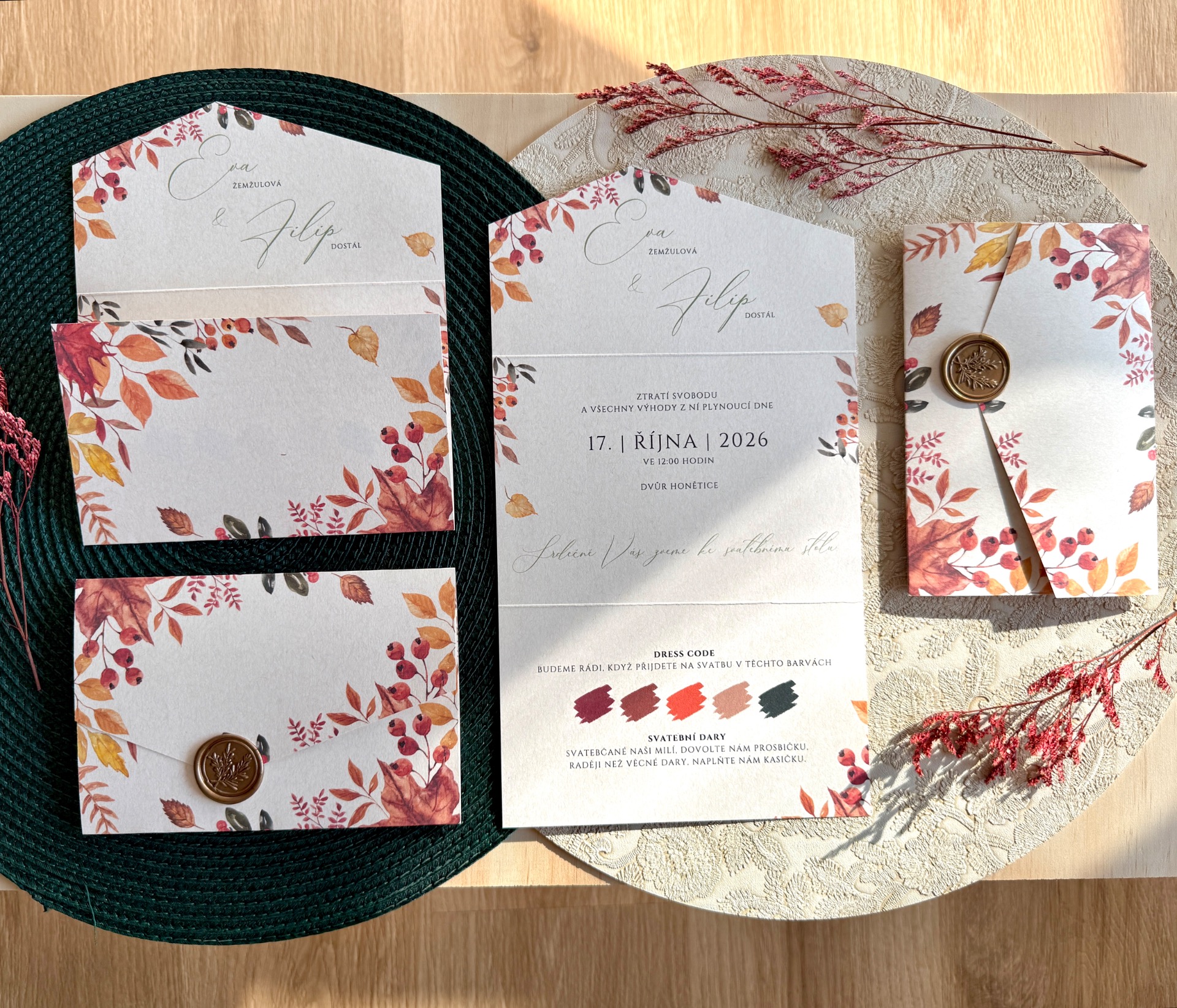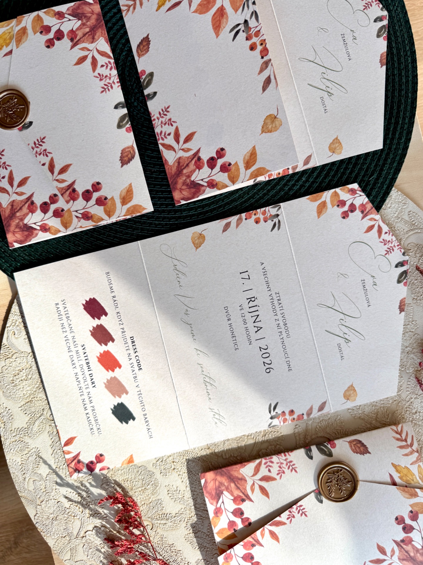 Velikost oznámení ve složeném tvaru 16,2 x 11 cm.