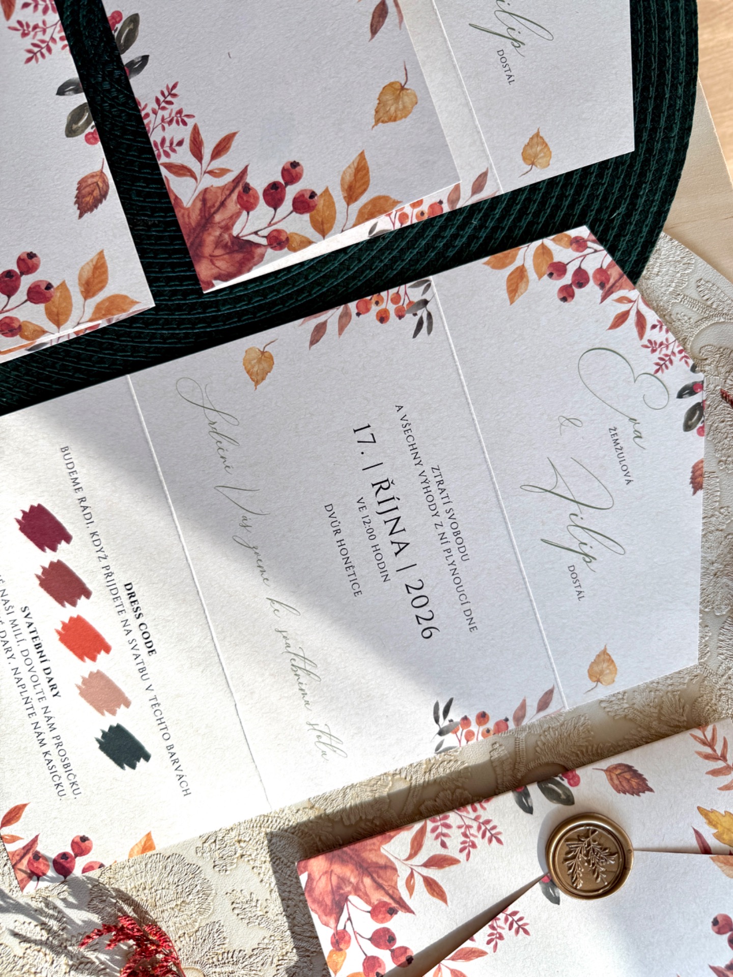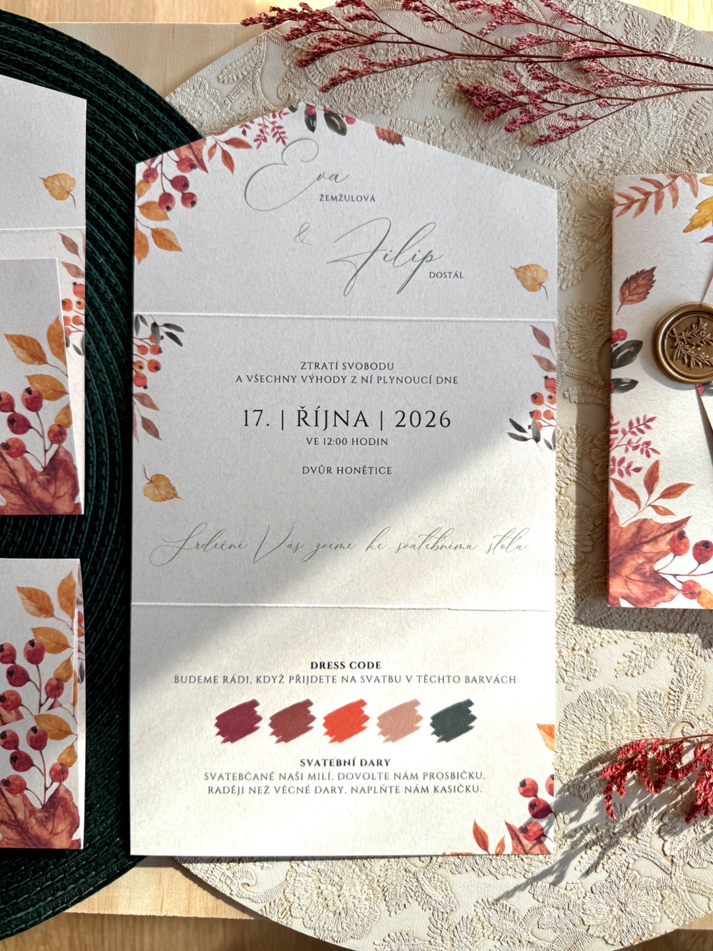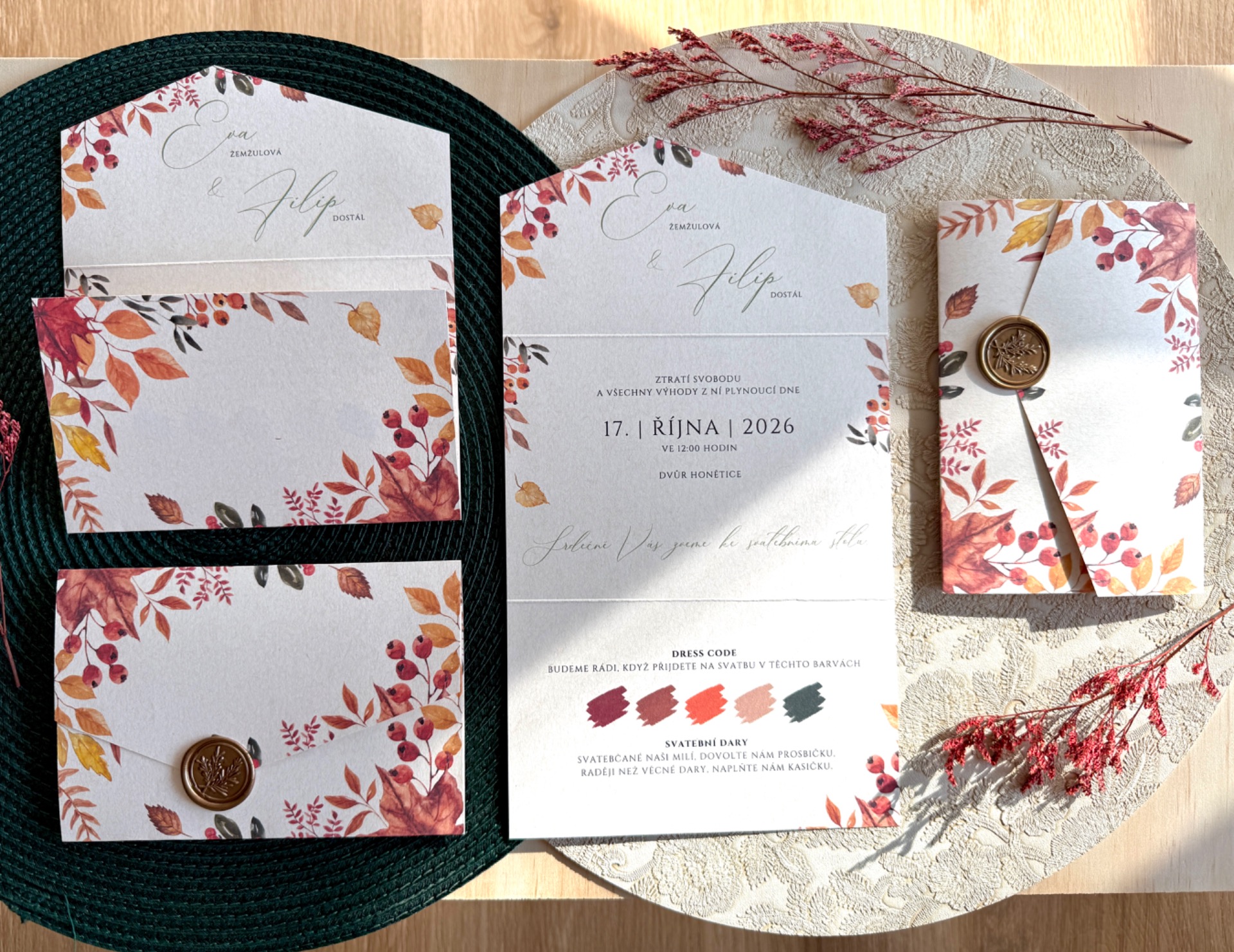 Velikost oznámení ve složeném tvaru 16,2 x 11 cm.